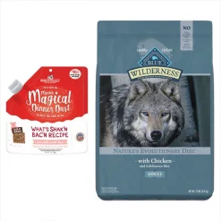 - Blue Buffalo Wilderness Chicken Recipe Grain-Free Dry Dog Food, 11-lb bag—Contains omega-3 and -6 fatty acids to support healthy skin and a lustrous coat.