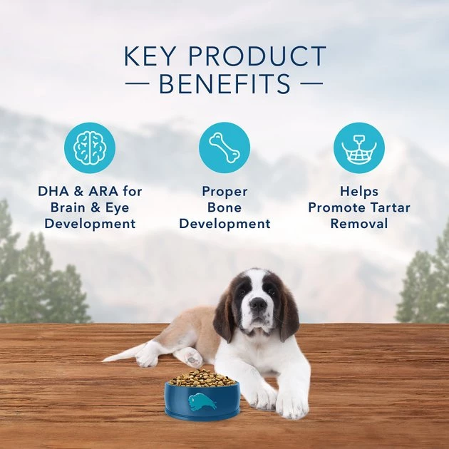 Clumsy limbs, an abundance of energy, and the need to sniff everything on earth—what’s not to love about a large breed puppy? Blue Buffalo Wilderness Large Breed Puppy Chicken Recipe Grain-Free Dry Dog Food is a protein-rich kibble that helps support healthy muscle and bone growth. It starts off on the right paw with delicious chicken as the very first ingredient to help fuel your furry friend, plus it contains DHA to support cognitive development. But the goodness doesn’t stop there, because this recipe also includes vitamins, minerals and other nutrients, along with antioxidant rich LifeSource Bits!