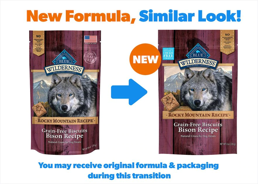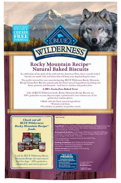 BLUE Wilderness Rocky Mountain Recipe Grain-Free Biscuits Bison Recipe are intended for intermittent or supplemental feeding only.