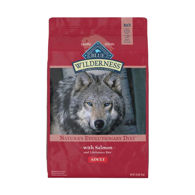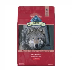 Blue Buffalo Wilderness Salmon Recipe Grain-Free Dry Dog Food is designed to satisfy the spirit of your dog’s inner wolf. With real deboned salmon as the very first ingredient, this high-protein, grain-free recipe helps build and maintain lean muscle mass. It also contains antioxidant rich LifeSource Bits, vitamins, minerals and other nutrients, plus complex carbohydrates from fruits and veggies to provide your adult dog with the energy he needs. He’ll howl with delight after every bite!