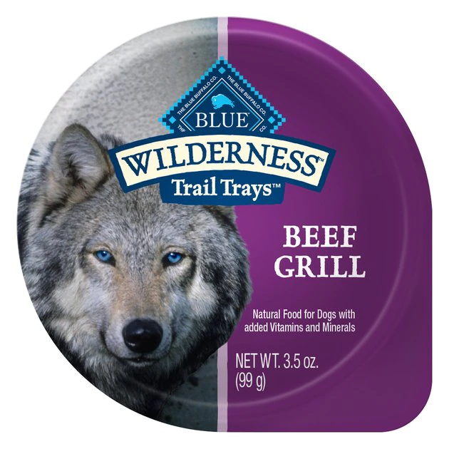 Easily serve your sidekick’s supper somewhere new with Blue Buffalo Wilderness Trail Trays High Protein Grain Free, Natural Adult Wet Dog Food Cups. Paw-fect for your grown-up guy, this irresistibly tasty wet food is made using only the finest naturally grain and gluten-free ingredients and packaged in a convenient cup. It starts with high-quality protein from tender chunks of grilled beef steeped in a hearty gravy and enhanced with vitamins and minerals. A flavorful addition to your furry friend’s next meal or served on its own, this high-protein dog food is made with wholesome ingredients that do not contain any grain, gluten, by-product meals, corn, wheat, soy, artificial flavors or preservatives.