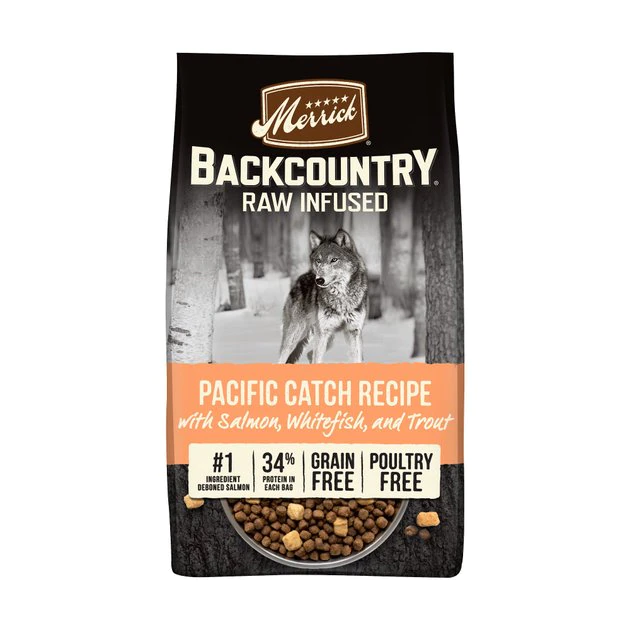 Take your dog’s taste buds on a trip to the coast with Merrick Backcountry Freeze-Dried Raw Pacific Catch Recipe with Salmon, Whitefish & Trout. This grain-free dried dog food features real deboned salmon as the very first ingredient. It’s also made with whitefish and trout for a protein-rich and highly digestible, poultry-free formula your dog will love. This dog food combines freeze-dried raw-coated kibble and freeze-dried raw bites to give your buddy all the benefits of a raw diet. It’s developed with high levels of omega fatty acids to help promote healthy skin and a shiny coat while glucosamine and chondroitin support healthy hips and joints. And just like other Merrick recipes, this food is crafted in their Hereford, Texas Kitchen and cooked in the USA.