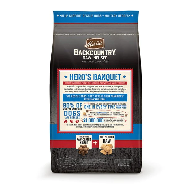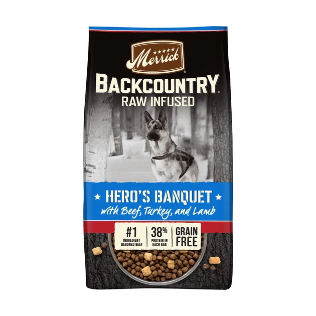 Reward your stellar pupper with Merrick Backcountry Raw Infused Grain Free Dry Dog Food Hero’s Banquet. This freeze-dried dry food for adult dogs features real deboned beef as the very first ingredient. It’s crafted into a protein-rich and highly-digestible formula in Hereford, TX and cooked in the USA. This grain and gluten-free dry dog food contains freeze-dried raw-coated kibble and freeze-dried raw bites to give your buddy all the benefits of a raw diet. It’s developed with high levels of omega fatty acids to help promote healthy skin and a shiny coat while glucosamine and chondroitin support hip and joint function. It’s paw-fect for helping all breeds of adult dogs build healthy muscles and maintain a high level of energy throughout the day.