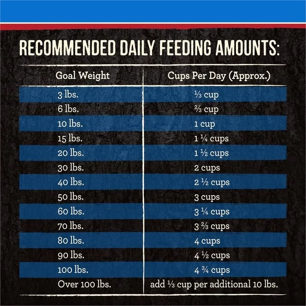 For dogs over 100 lbs: add 1/4 cup per additional 10 lbs.