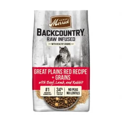 Gradually mix in the new food over a 5 – 7 day period, increasing the amount of Merrick Backcountry Great Plains Red Recipe + Grains each day.