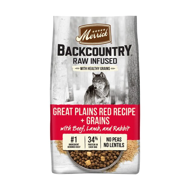 Give your mate a variety of real meat to eat with Merrick Backcountry Raw Infused Dry Dog Food Great Plains Red Recipe With Healthy Grains. This freeze-dried dry food for dogs features real deboned beef as the very first ingredient. It’s combined with lamb and rabbit in a protein-rich formula with whole grains to aid in digestion. This dry dog food contains freeze-dried raw-coated kibble and freeze-dried raw bites to give your buddy all the benefits of a raw diet. It’s developed without any peas or lentils and is paw-fect for helping all breeds of adult dogs build healthy muscles and maintain a high level of energy throughout the day.