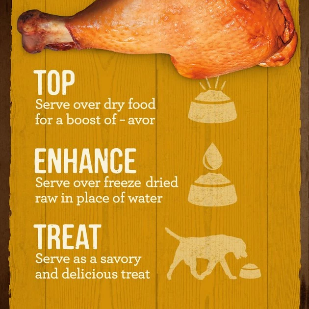- Add this savory, human-grade chicken bone broth to your doggo’s daily dinner for an easy, nourishing flavor boost.