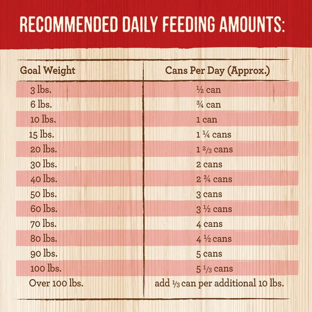 For dogs over 100 lbs., add 1/3 can for each additional 10 lbs.