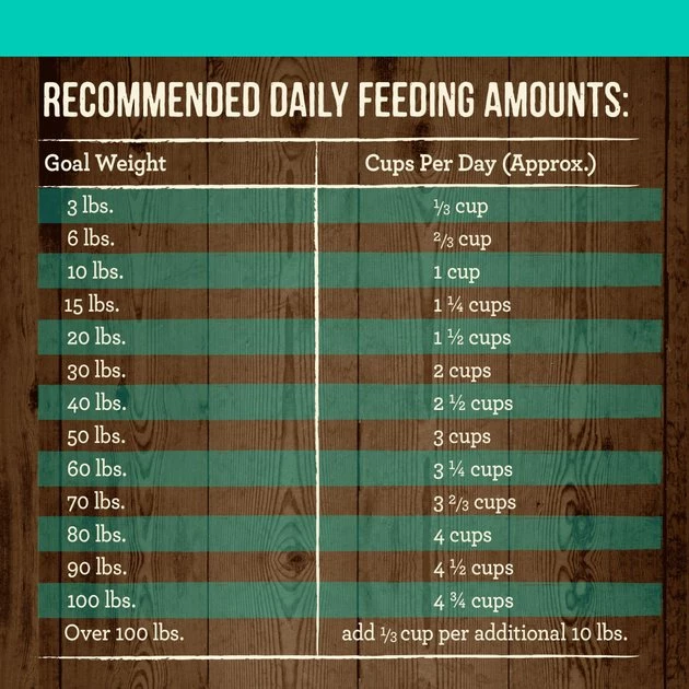 - For dogs over 100 lbs: Add 1/3 cup per additional 10 lbs.