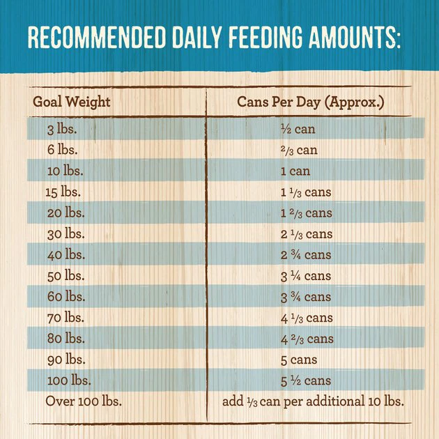 If feeding with dry food, reduce wet amount by 6 oz for every 1/2 cup of dry food.