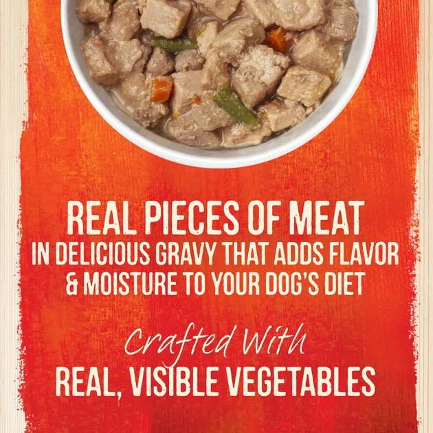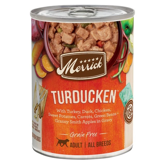 With real chicken and turkey in its top five ingredients, Merrick Grain Free Wet Dog Food delivers tail-wagging taste with every meal. Made with quality ingredients like USDA-inspected deboned chicken and turkey, sweet potatoes, carrots, green beans and granny smith apples, it’s served in a savory gravy of chicken and turkey broth. This food is free of bad stuff like artificial colors, flavors, preservatives and by-products. It’s grain-free, paw-fect for pups with food sensitivities. Each can features a pull-tab for easy opening and fast serving when your furbaby just can’t wait for his food.