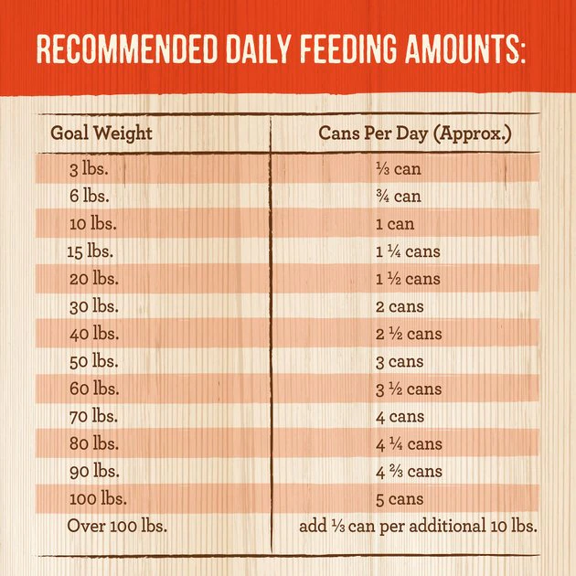 For dogs over 100 lbs, add 1/3 can for each additional 10 lbs.