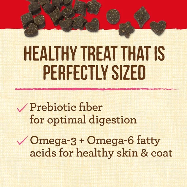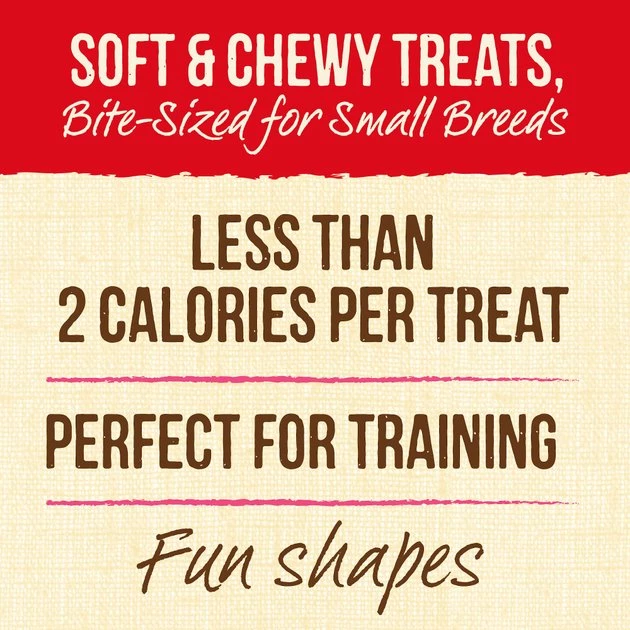 - Ideal for small breed dogs, these soft treats come in a variety of fun shapes that are perfectly sized for small mouths.