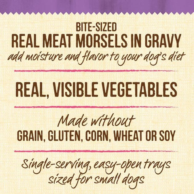 Serve your small sidekick a meal with real appeal using Merrick Lil’ Plates Grain Free Small Breed Wet Dog Food Itsy Bitsy Beef Stew. This delicious wet food for small dogs features real deboned beef as the very first ingredient. It’s crafted with a savory gravy and formulated for complete and balanced nutrition with prebiotics, probiotics and essential minerals to aid in digestion. This grain and gluten-free wet dog food is developed with high levels of omega fatty acids to help promote healthy skin and a shiny coat while glucosamine and chondroitin support hip and joint function. It’s paw-fect for helping small breeds of dogs in any stage of life build healthy muscles and maintain a high level of energy throughout the day.