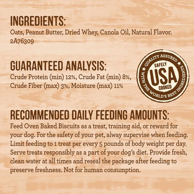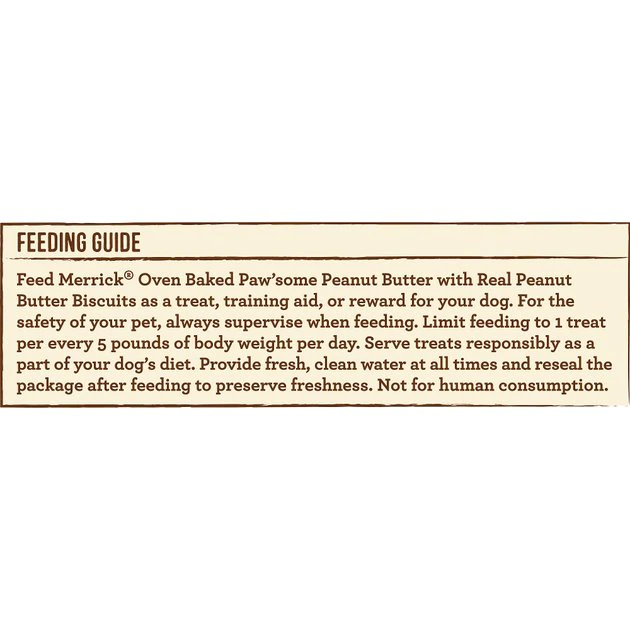 Feed Paw’some Peanut Butter with Real Peanut Butter Biscuits as a treat, training aid, or reward for your dog. For the safety of your pet, always supervise when feeding. Limit feeding 1 treat per every 5 pounds of body weight per day. Serve treats responsibily as a part of your dog’s diet. Provide fresh, clean water at all times and reseal the package after feeding to preserve freshness. Not for human consumption.