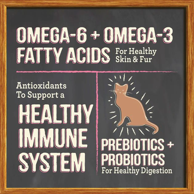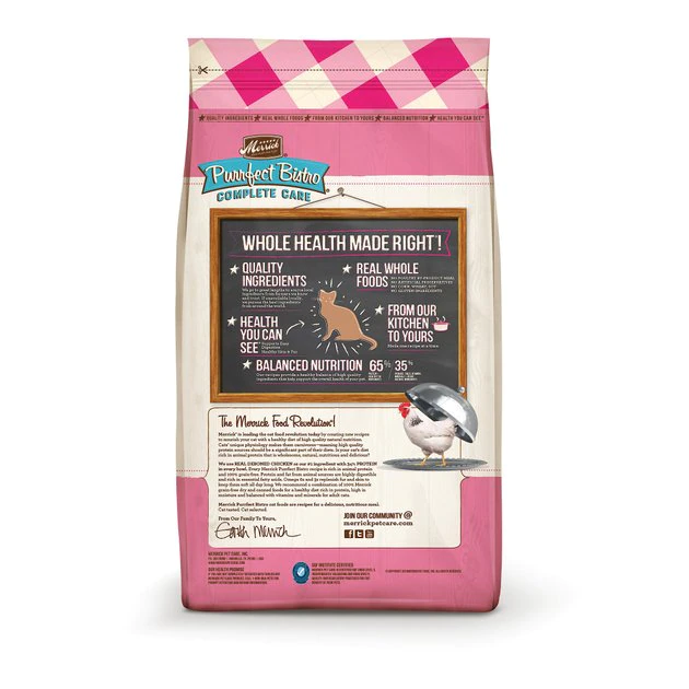 Feed yoru sensitive sidekick Merrick Purrfect Bistro Grain Free Cat Food, Complete Care Sensitive Stomach Dry Cat Food Recipe For cats. This natural cat food starts with real deboned chicken as the #1 ingredient and includes other whole foods like sweet potatoes, easily digestible carbohydrates, that support sustained energy without upsetting sensitive digestive systems. This cat food is free from grains and crafted with protein that is easy to digest, along with probiotics and prebiotics to support optimal digestion. This kitty kibble also contains omega-6 and omega-3 fatty acids to nourish skin and fur, plus antioxidants to help support a healthy immune system. Whether you have an outdoor cat or an indoor cat, this high-protein recipe is purr-fect because it delivers added vitamins, minerals and taurine, providing all kitties with the nutrition they need. And you can feel good knowing that all Merrick adult cat food dry recipes are made without artificial colors, flavors or preservatives and that Merrick cat food recipes are crafted in our Hereford, TX kitchen and cooked in the USA.