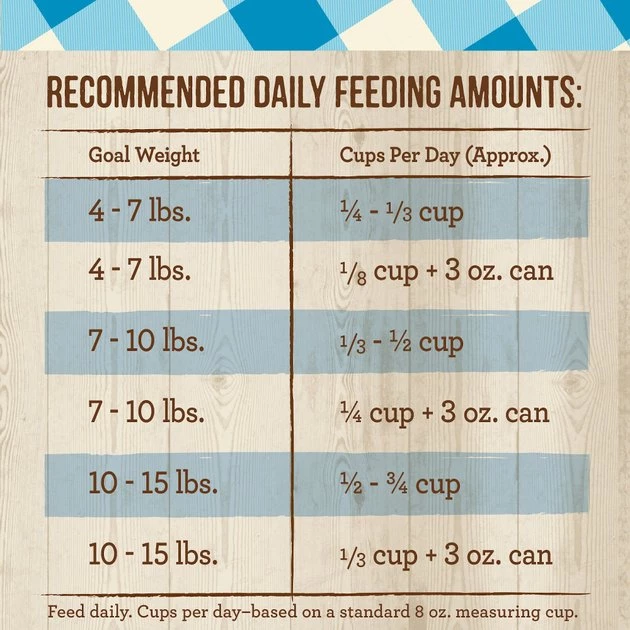 Gradually mix in new food over a 7 – 10 day period, increasing the amount of Merrick Purrfect Bistro Recipe each day.
