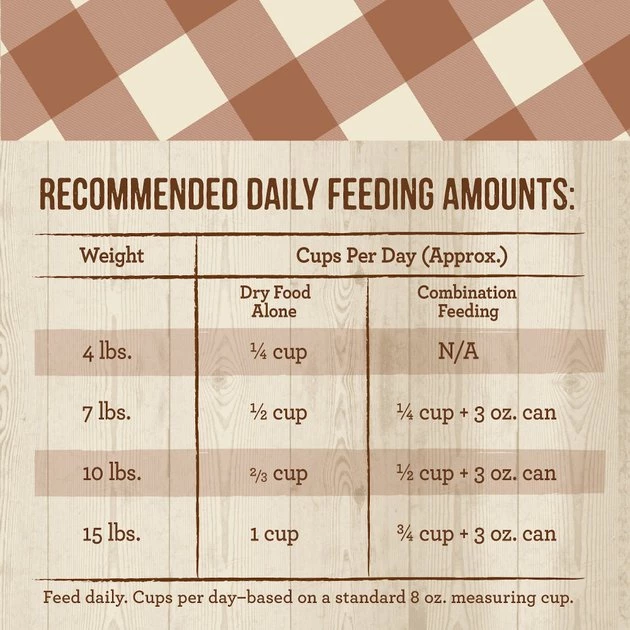 | 15 lbs | 1 | 3/4 cup + 3-oz can |