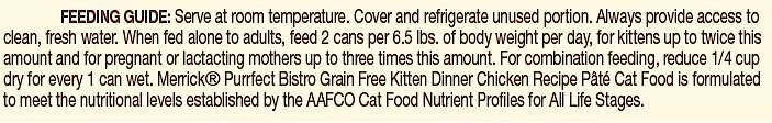 Gradually mix in the new food over a 5 – 7 day period, increasing the amount of Purrfect Bistro Kitten Dinner Pate each day.