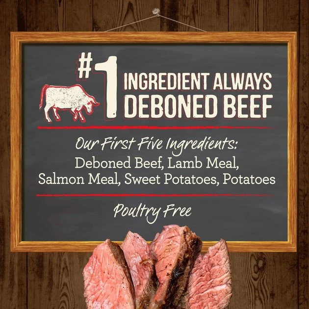 - Poultry-free kibble made with real deboned beef as the very first ingredient to help fuel your furry friend.