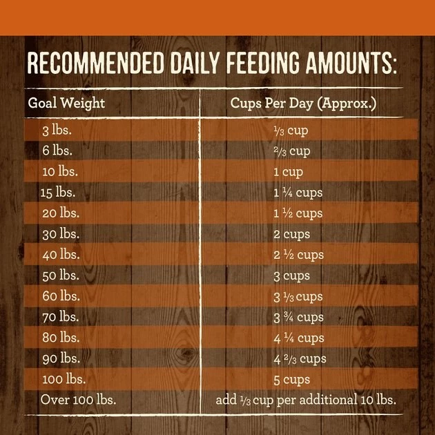 Add 1/3 cup for each 10 lbs over 100 lbs.